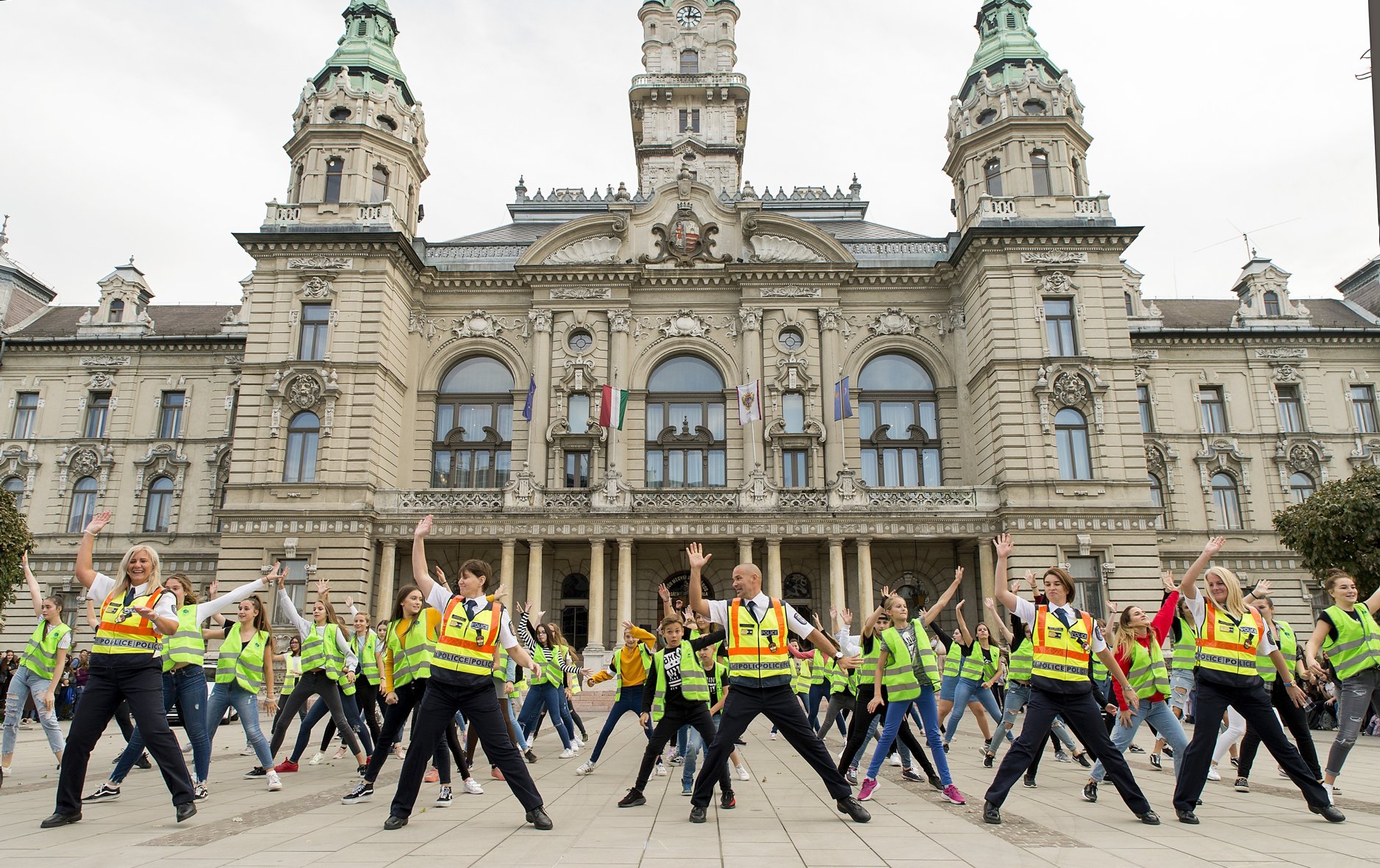 Studenten und Polizisten tanzten in dieser Woche vor dem Rathaus in Győr. Der improvisierte Tanz sollte auf die Unfälle an Fußgängerüberwegen aufmerksam machen und helfen, sie zu verhindern. Die Aktion wurde vom Polizeipräsidium Győr-Moson-Sopron organisiert.