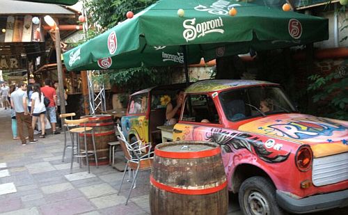 Die „Schrott-Bar“ befindet sich genau gegenüber des großen Forums (Einkaufszentrum) in Debrecen. Ein Besuch lohnt sich auf jeden Fall!