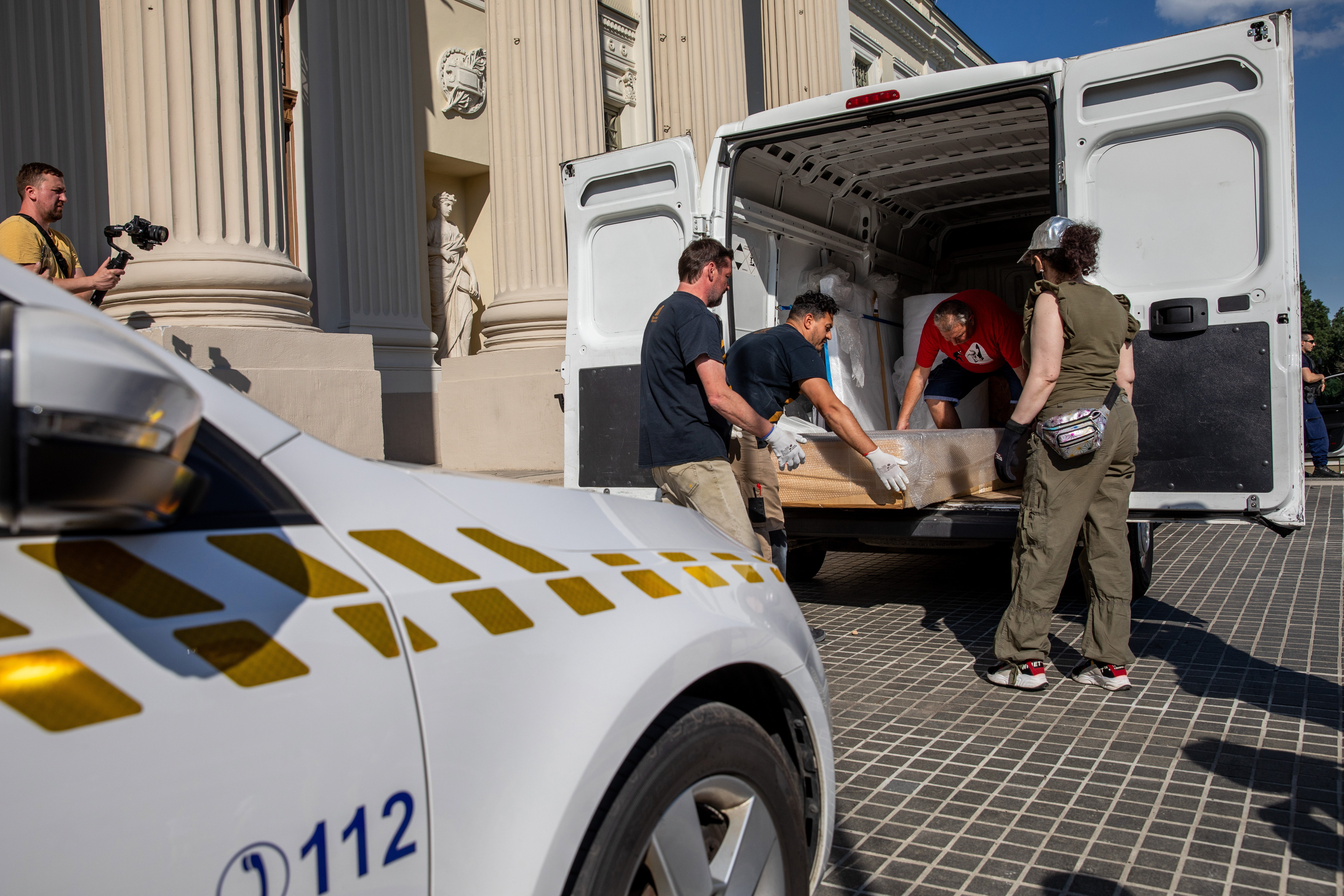Die Sicherheitsprotokolle hören aber nicht bei der Lieferung auf, der Rockbund hat eine spezielle Schutzbestimmung, sie muss sich zuerst, verpackt, an die neuen Bedingungen, wie Temperatur, Luftfeuchtigkeit, oder Lichtverhältnisse gewöhnen. Danach kann man sie auspacken und ausstellen.