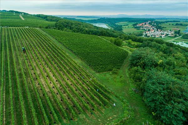 Schöne Bilder zeigen die Ernte von einer der bekanntesten Traubenart Ungarns, der Irsai Olivér, beim Szende Weingut im Südungarischen Palkonya.