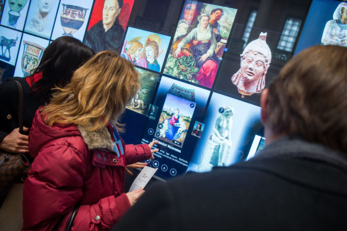 Die LCD-Wand zeigt Stücke der Sammlung, die derzeit in der Dauerausstellung enthalten sind: Von der Zeit des ägyptischen Alten Reiches bis zum 18. Jahrhundert, rund 300 Gemälde, Skulpturen und andere Kunstwerke. Sie helfen den Besuchern, die Route der Ausstellung zusammenzustellen, aber es lohnt sich auch im Nachhinein ihre QR-Codes abzulesen, um zahlreiche zusätzliche Informationen auf das Smartphone herunterzuladen.