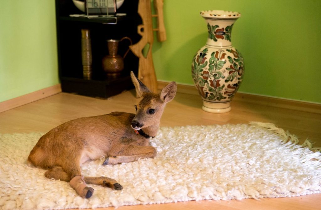 Vor rund einem Monat kam es zu einem Unfall mit einem Reh…Farkas Zszsanna und Vendégh Gábor hatten damals sofort gehandelt und dem verletzten Reh unmittelbar Hilfe geleistet. In einer Tierklinik wurde dem Reh ein Teil des Beines amputiert und das Tier wurde weiter ärztlich versorgt. Farkas Zszsanna und Vendégh Gábor machten es sich seither zur Aufgabe das Reh wieder aufzupeppeln und zu pflegen…Doch nicht irgendwo. Sie versorgten das Tier in ihrer Wohnung in einem großen Mehrfamilienhaus in Révkoárom, natürlich nach Absprache mit behörden und Veterinäraufsicht.