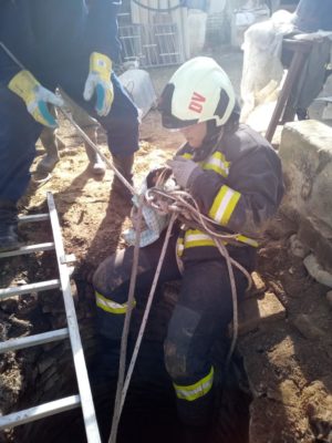 Zwölf Meter tief fiel dieser vier Monate alte Welpe. Das Tier befand sich tagelang am Boden des Brunnens. Da sein Herrchen ihn trotz wiederholter Versuche nicht aus dem Brunnen retten konnte, suchte er in Dombóvár die Hilfe der Feuerwehr. Feuerwehrleute bauten den Brunnen teilweise ab, dann ging ging man mit Hilfe einer Rettungsleine in die Tiefe und holte den verzweifelten Hund zurück. Glücklicherweise war er bis auf Erschöpfung und Schreck nicht gesundheitlich angeschlagen.
