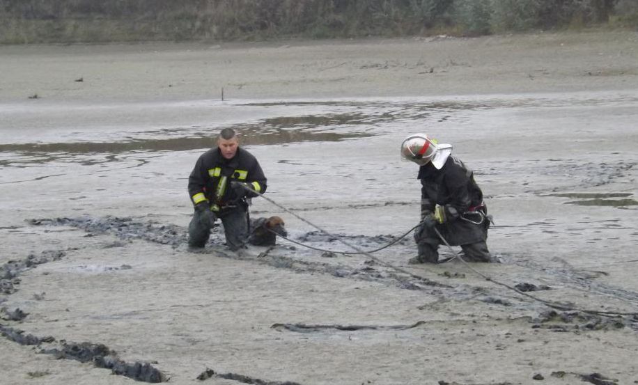 Eine dramatische Tierrettung für die Feuerwehr in Kisbér! Ein Hund steckte im tiefen Schlamm fest und musste professionell gerettet werden. Das Schlammgebiet in einem abgesenkten Minenbereich wurde dem Hund zum Verhängnis. Das Tier war in dem Wasser- /Schlammloch rund 50 Meter vom Ufer entfernt. Mit Seilen konnten die Retter das Tier schnell aus der misslichen lage befreien und dem Besitzer übergeben. professionelle und schnell Hilfe der ungarischen Feuerwehr!