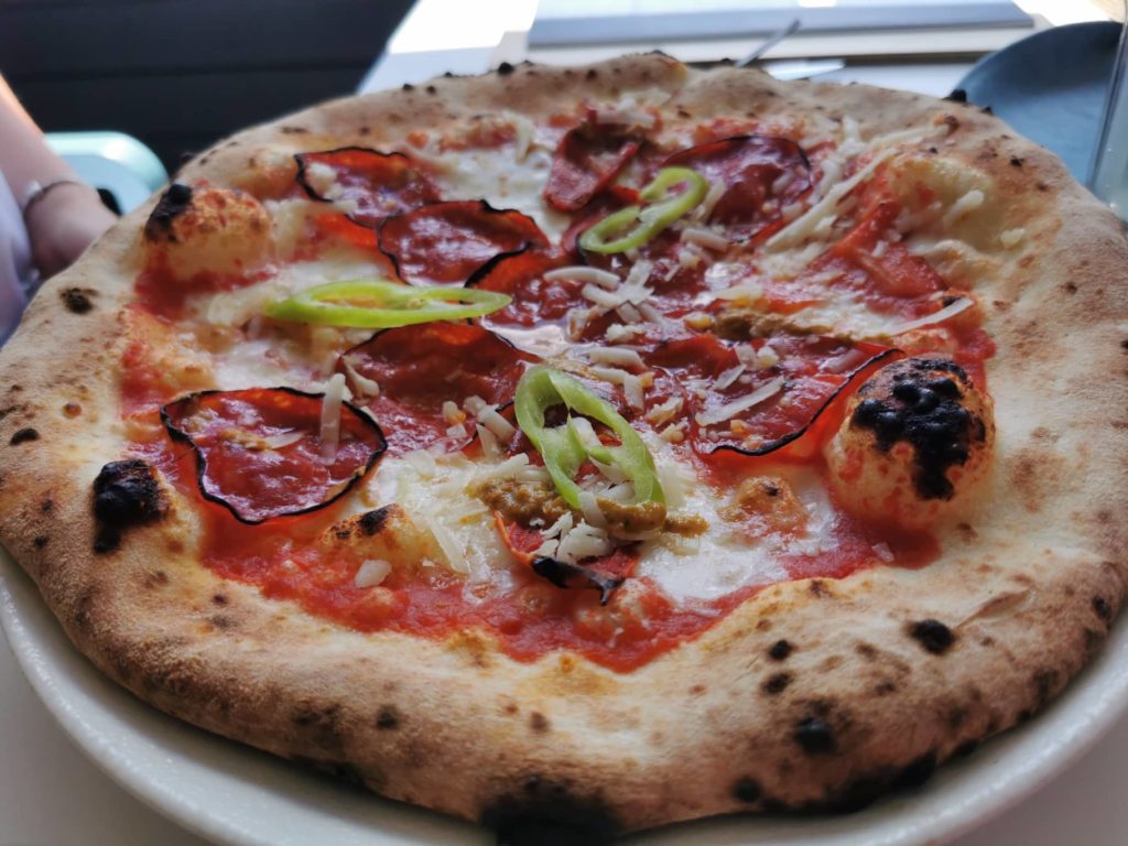 Die Speisekarte ist sehr innovativ und kreativ aufgestellt und bietet neben wirklich extrem knusprigen und schmackhaften Pizzen, die im Show-Ofen im Restaurant vor den Augen der Besucher angefertigt werden, eine Reise durch die kulinarischen Genüsse. Leckere Suppen, die in die jeweilige Saison passen, Trendgerichte wie ein Wiener-Schnitzel (extrem groß und mit leckerem Kartoffelsalat), natürlich frische Fischgerichte und auch für die Vegetarier stehen Varianten auf der Karte, die auch Nicht-Vegetariern Spass machen, wie zum Beispiel das Blumenkohl-Curry.
