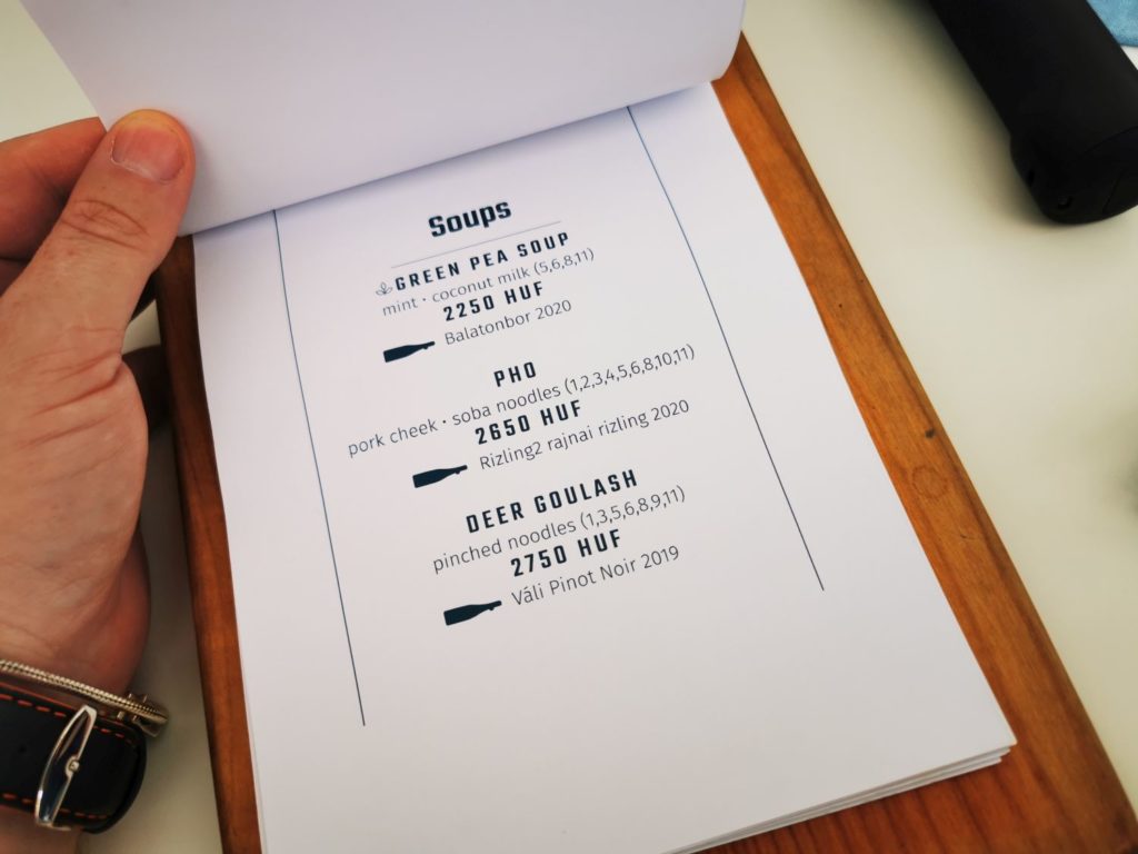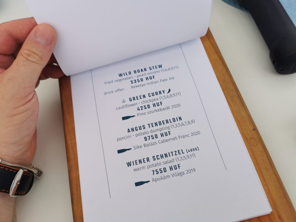 Natürlich zieht sich das Thema Balaton auch im Restaurant und auf der Karte durch. Wichtig zu erwähnen ist natürlich auch der Wein. Die Besitzer, die Familie Laposa haben es bereits sehr früh verstanden, den richtigen Wein zu produzieren, so ergibt es sich nun, daß das Restaurant auch gleichzeitig einen großen Weinkeller, bzw. Weinproduktion beherbergt. Somit ist bereits gesichert, daß auch der richtige Wein zum richtigen Gericht parat steht.