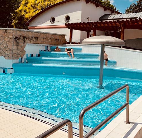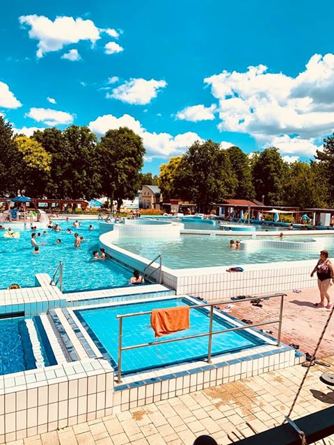 Ein Erlebnisbericht von Marlene Baumann: Zsóry Strand- und Heilbad mit Heilzentrum Zsóry Gyógy- és Strandfürdő befindet sich ca. 4 KM vom Stadtzentrum Mezökövesd entfernt und ist damit ca 25 Minuten südöstlich von Eger gelegen. Das Strandfürdö würde ich vorallem großen Familien empfehlen, da es riesengroße Grünflächen gibt, auf denen man sich hervorragend ausbreiten kann und es zu keinem Platzmangel kommen wird . Das Strandbad wird jeder Altersgruppe gerecht . Für die Kinder gibt es einen schönen Spielplatz, spezielle Kinder- und Babybecken und für die älteren Kinder (auch unter Uns ) spektakuläre Rutschen . Zum Entspannen und Verweilen , laden zahlreiche warme Thermalpools ein , die Temperaturen liegen zwischen 32-40 Grad – je nach Becken .