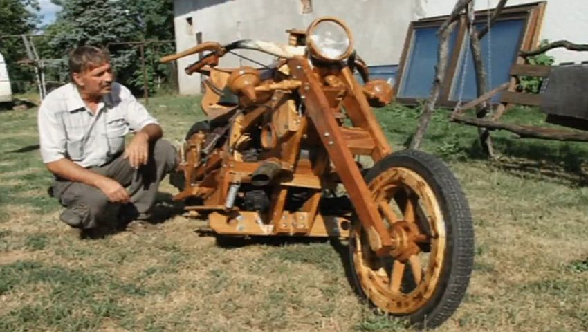 Istvan Puskas liebt Motorräder sehr, aber Holz liebt er noch viel mehr. Deshalb baute er ‚einfach‘ ein Motorrad aus Holz. Viele Stunden Arbeit und viel Geduld brauchte der Holzkünstler für seinen Prototypen. Jetzt ist er froh um jede Stunde Arbeit, denn das Ergebnis kann sich shen lassen. Ein Stück ungarische Kunst…