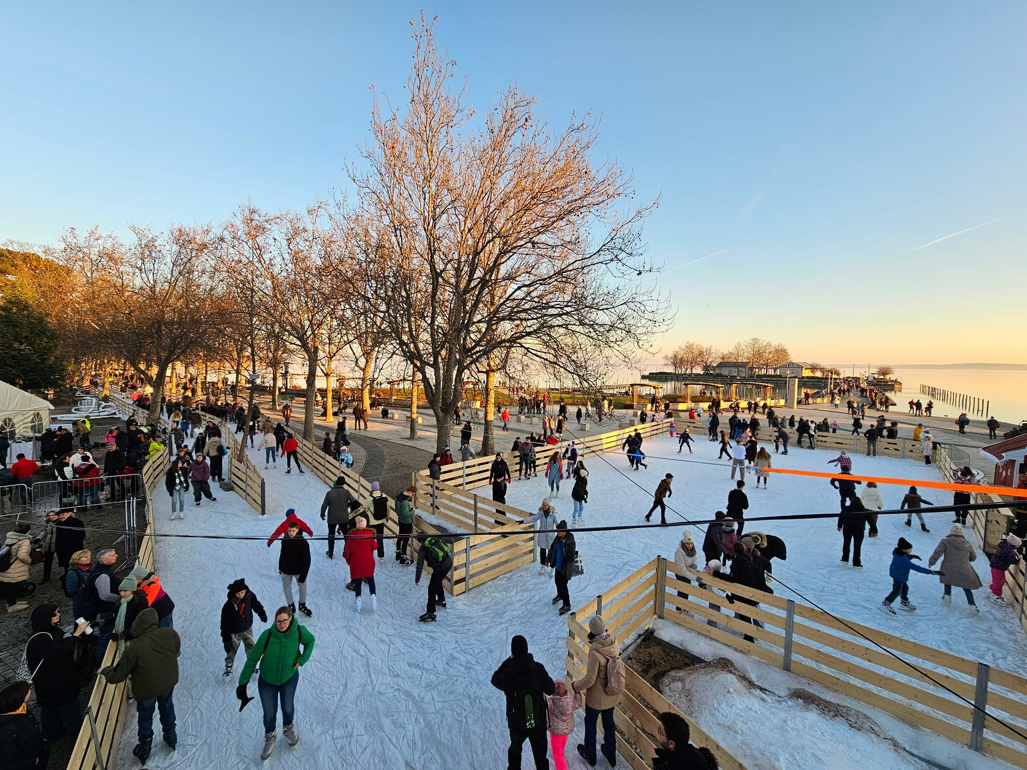 Die 3600 Quadratmeter große Eislaufbahn, die durch einen kilometerlangen Korridor verbunden ist, umfasst die Flächen an der Zákonyi-Straße, dem Vitorlás-Platz und der Tagore-Promenade. Auch in diesem Jahr bietet sie zahlreiche Veranstaltungen. Neu ist eine 110 Quadratmeter große, kostenfrei nutzbare Eislaufbahn für Kinder am Vitorlás-Platz, die auch als Austragungsort für verschiedene Sportevents und Programme dient.