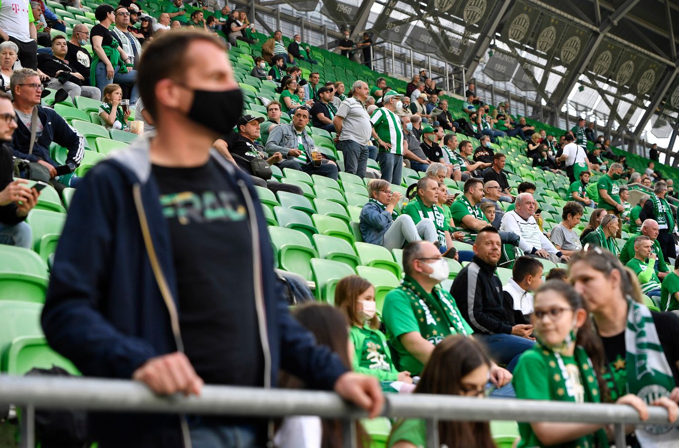 Ferencváros TC - Mezőkövesd Zsóry spielte gestern und die Resonanz von Zuschauern war erstaunlich gering. Viel Luft und Zwischenraum zwischen den wenigen Fans zeigt, daß entweder die Fans noch zurückhaltend und vorsichtig sind oder die Impfquote bei den Fussballfans noch deutlich gering ist. Die erste handvoll Fans hatten jedoch erstmal wieder Freude am Fußballspiel...