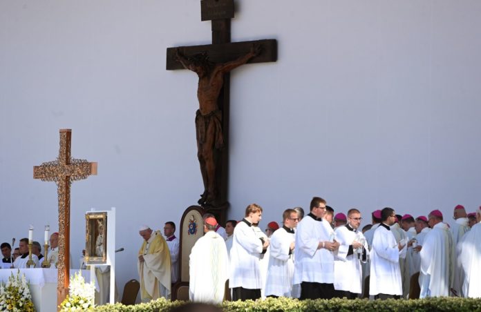 Die Abschlussmesse des Papstes beim Eucharistischen Kongesses in Budapest hat pünktlich 11:30 Uhr auf dem Heldenplatz begonnen. Rund 75.000 Menschen verfolgen die Messe live vor Ort. Mit dem „Papamobil“ wurde der Papst vorab auf den Heldenplatz unter Jubeln der Besucher eingefahren.