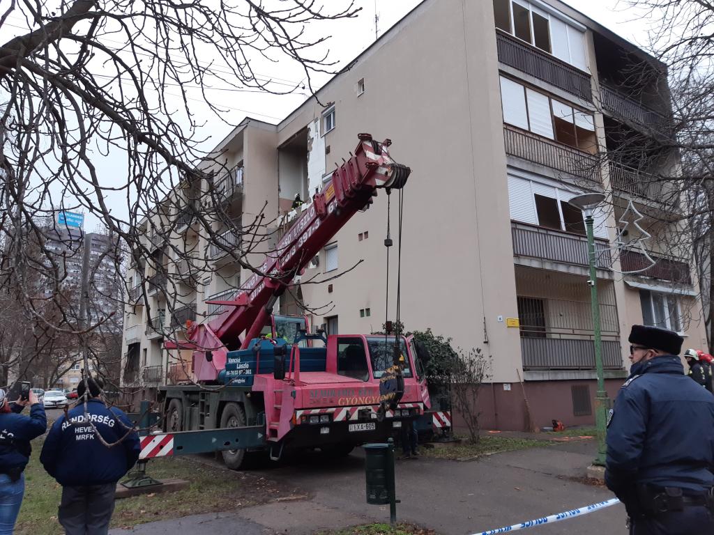 Am Mittwoch gab es eine Gasexplosion mitten in der Nacht, in einem dreistöckigen Mehrfamilienhaus in Gyöngyös. Einer der vierundzwanzig Wohnungen im zweiten Stock fing Feuer von der Explosion und brannte in vollem Umfang. Feuerwehren kamen aus Eger, Hatvan, Jászberény, Heves, Aszód und Bátonyterenye. Die Einsatzkräfte evakuierten das Gebäude und löschten die Flammen. 42 Menschen wurden evakuiert, von denen sechs vorübergehend in einer Grundschule untergebracht wurden, andere gingen zu Verwandten. In der vom Feuer betroffenen Wohnung befand sich eine Person, der nicht mehr geholfen werden konnte – Die Person verstarb vor Ort. Nach der Detonation wurde das Gebäude stark beschädigt, Feuerwehrleute, Polizei und Statiker untersuchen die Bedingungen und die Ursache der Explosion.