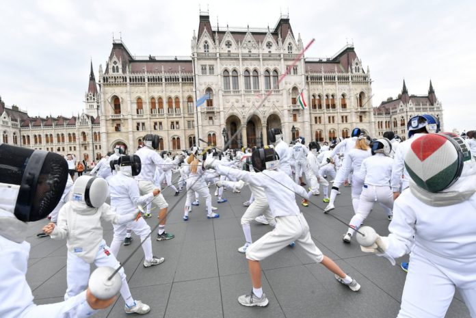 Anlässlich des Welt-Fecht-Tages, hat der Ungarische Fechterverband heute in Budapest auf dem Kossuth Platz vor dem Parlament einen Flashmob praktiziert. Mit zahlreichen Fechtern wurde hier plötzlich gezielt losgefechtet… Ein imposantes Bild welches auch zahlreiche Besucher begeisterte.