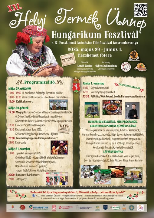 Vom 29. Mai bis 1. Juni 2025 findet in Kecskemét erneut das Hungarikum-Festival gemeinsam mit dem Fest der Regionalprodukte statt.