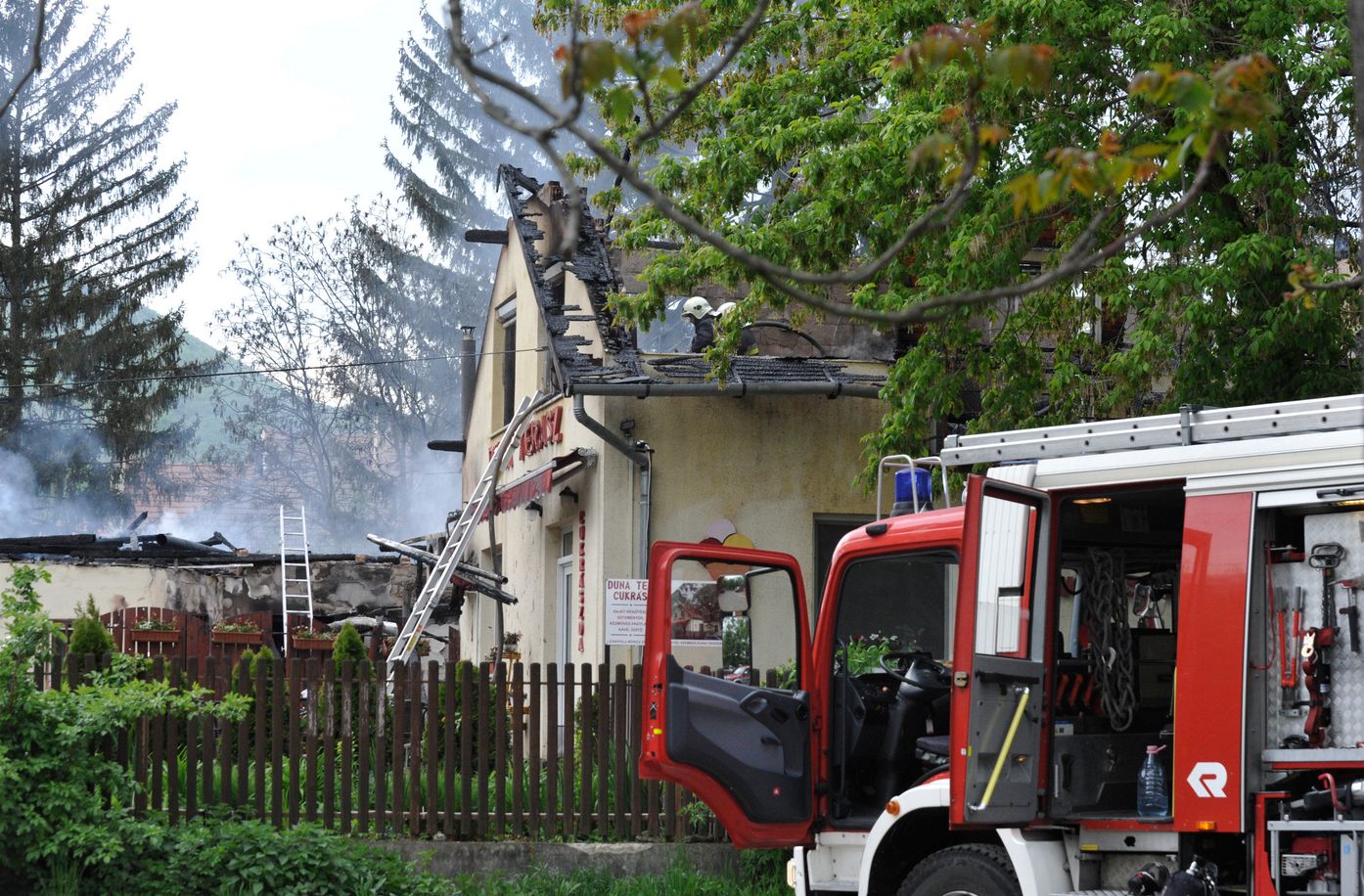 Das Dach der Konditorei an der Donau Terasse in Leányfalun brannte am Ostermontag lichterloh. Die Feuerwehr musste ausrücken um das Dach mit mehreren Löschangriffen zu löschen. Es entstand hoher Schaden und auch durch Löschwasser sind die unteren Etagen derzeit nicht nutzbar. das komplette Dach der belibten Konditorei wurde ein Raub der Flammen.