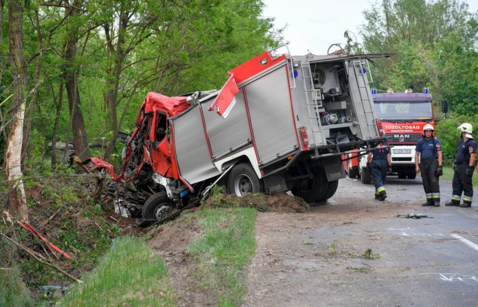 Die Feuerwehr aus Hajdúböszörmény waren auf der Einsatzfahrt nach Hajdúhadház, als ihr Fahrzeug von der Fahrbahn abkam und frontal gegen einen Baum prallte. Vier Feuerwehrmänner wurden verletzt, von denen einer mit einem Rettungshubschrauber ins Krankenhaus gebracht wurde. Während der technischen Rettung sperrte die Polizei den betroffenen Straßenabschnitt. Die Umstände des Unfalls werden noch untersucht. Das Feuer in Hajdúhadház wurde schließlich von der Feuerwehr Debrecen gelöscht.