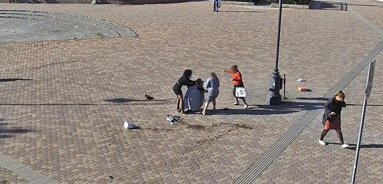 Korrábi sérelmeit akarta megtorolni úgy, hogy dulakodás közben benzinnel locsolt le több embert. Szerencsére meggyújtani azonban már nem tudott senkit, így személyi sérülés nem történt. Az eseményt a városban felállított térfigyelő kamerák rögzítették, amelyen a rendőrség munkatársai jól látták, hogy egy nő benzinnel locsolt le több személyt is. Mindeközben azt kiabálta: „Felgyújtalak, meghalsz!“