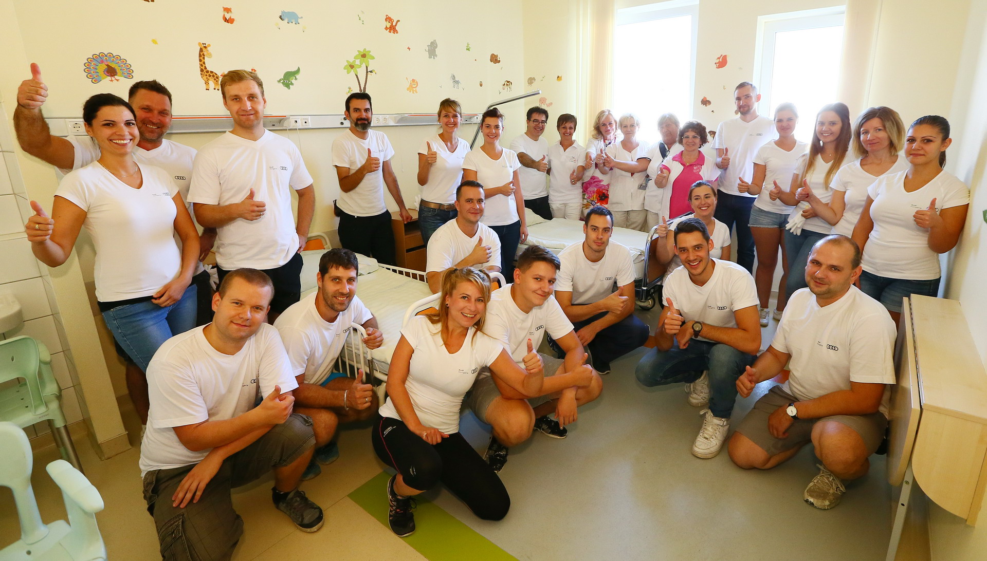 Eine Gruppe von freiwilligen Audianer in der Kinderstation des Győrer Krankenhauses