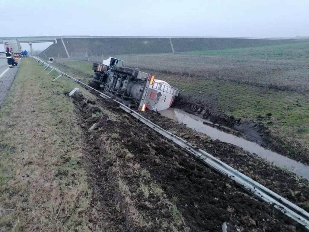 Ein geffahrgut-LKW geriet gestern Nachmittag auf der M44 von der Fahrbahn ab und kippte in den Graben Der Unfall ereignete sich im Gebiet Kunszentmárton auf der Seite nach Kecskemét. Feuerwehren aus Kunszentmárton, Szolnok und Tiszaföldvár sowie das mobile Katastrophenschutzlabor des Landkreises Csongrád-Csanád und der Katastrophenschutzdienst des Landkreises Jász-Nagykun-Szolnok wurden an die Einsatzstelle gerufen. Spezialisten des mobilen Labors führten mehrere Messungen durch, bei denen keine Leckage am Fahrzeug festgestellt wurde. Die ankommenden Einheiten sicherten das Fahrzeug und den Standort bis zum Eintreffen der Bergungsfahrzeuge. Der Gefahrenstoff wurde umgeladen. Es folgte eine technische Bergung des Fahrzeugs. Während der Bergung gab es eine komplette Straßensperre.