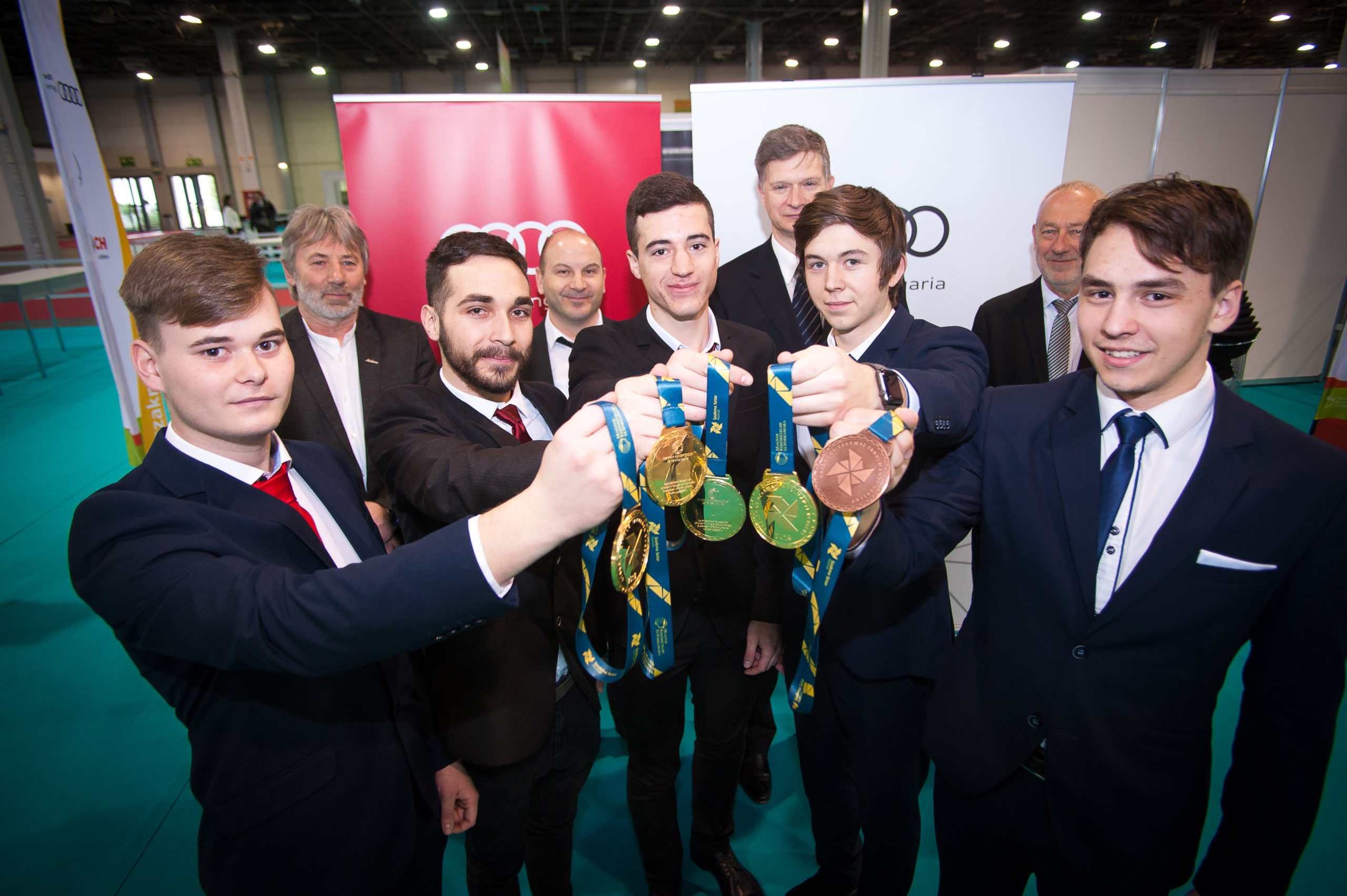 Vier Gold- und eine Bronzemedaille haben die Azubis der dualen Berufsausbildung der Audi Hungaria und ihren Partnerschulen beim „Berufstar“ Wettbewerb vergangene Woche gewonnen. In den Berufen Autohersteller, Karosserieschlosser, Techniker für alternative Fahrzeugantriebe und Techniker für Automatik gab es einen Goldregen und die Schüler haben den Titel „ausgezeichneter Auszubildender des Berufes“ erhalten. Der Wettbewerb wurde von der ungarischen Industrie- und Handelskammer organisiert.