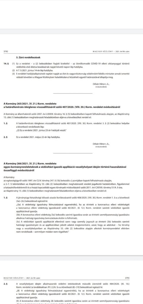 Ungarische Verordnung, angepasst heute am 22.05.2021