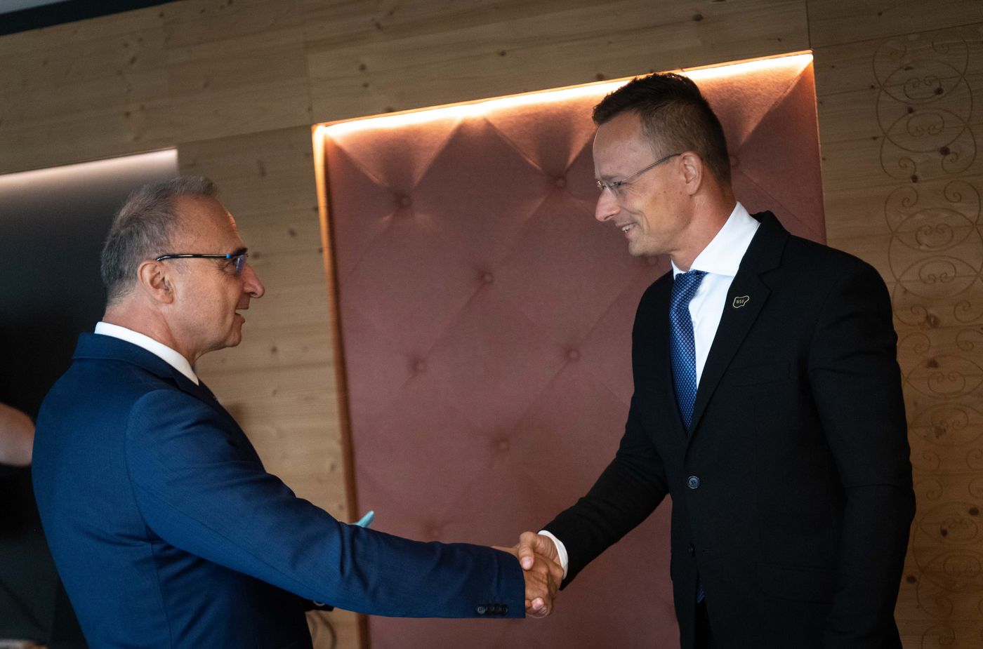 Der Aussenminister (rechts) auf dem Forum in Bled hier mit dem Aussenminister Kroatiens / Foto: MTI/KKM/Borsos Mátyás