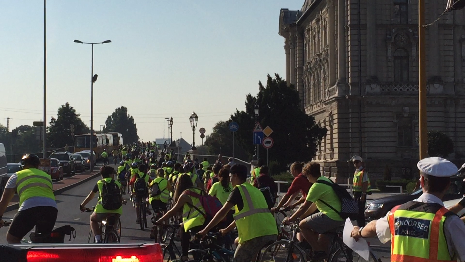 Das westungarische Städtchen Györ ist für die Fahrradfreundlichkeit bekannt. Heute morgen starteten hunderte Radfahrer zu einer Charityfahrt rund um die Donaustadt. Györ ist bekannt bei Radtouristen.