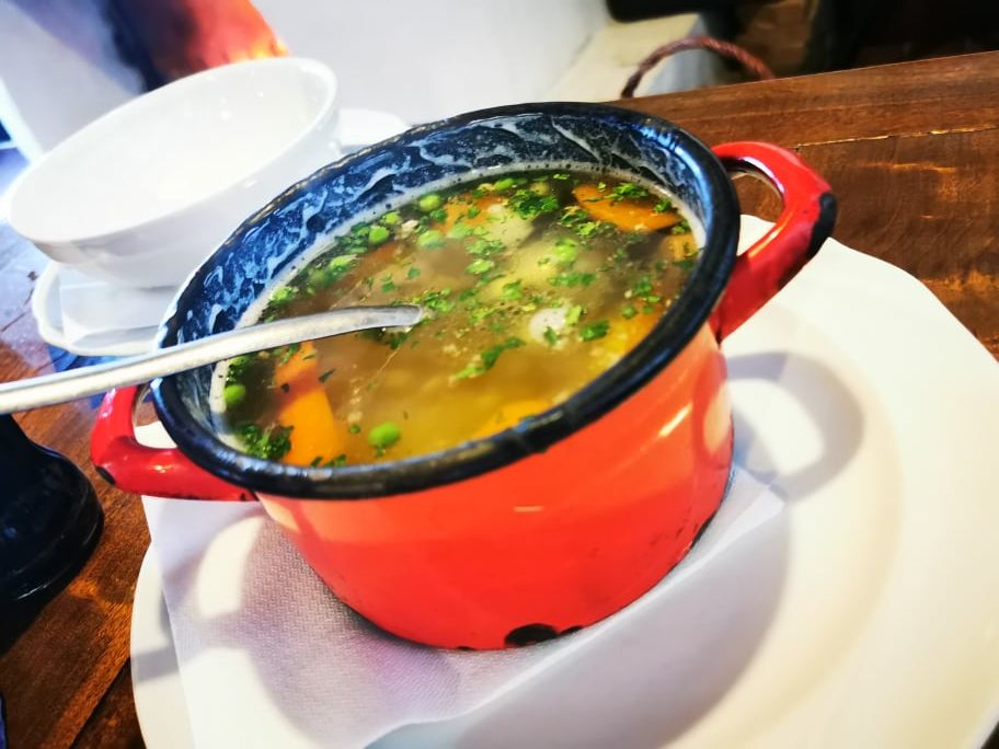 Besonders hervorzuheben auch die Suppen, die alle einen besonderen Touch haben. Die Knoblauchcremesuppe wird im frischen selbstgebackenen Brotlaib serviert, die Gulaschsuppe im kleinen Kessel mit ordentlich Schärfe anbei, die Gemüsesuppe im Csárda-Kessel serviert usw.