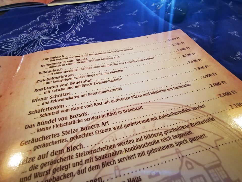 Kommen wir zum Wichtigsten Teil. Die kulinarischen Finessen auf der Karte sprechen eine klare Sprache: Original ungarische deftige Küche aus allen Landsteilen mit einigen Einschlägen von internationalen Kompromissen wie das Wiener Schnitzel. Ob es das Räuberfleisch, der gute Hortobágyer Gulasch im Palatschinken oder gar die knusprige Gänsekeule ist…HIER ist wirklich Ungarn drin!