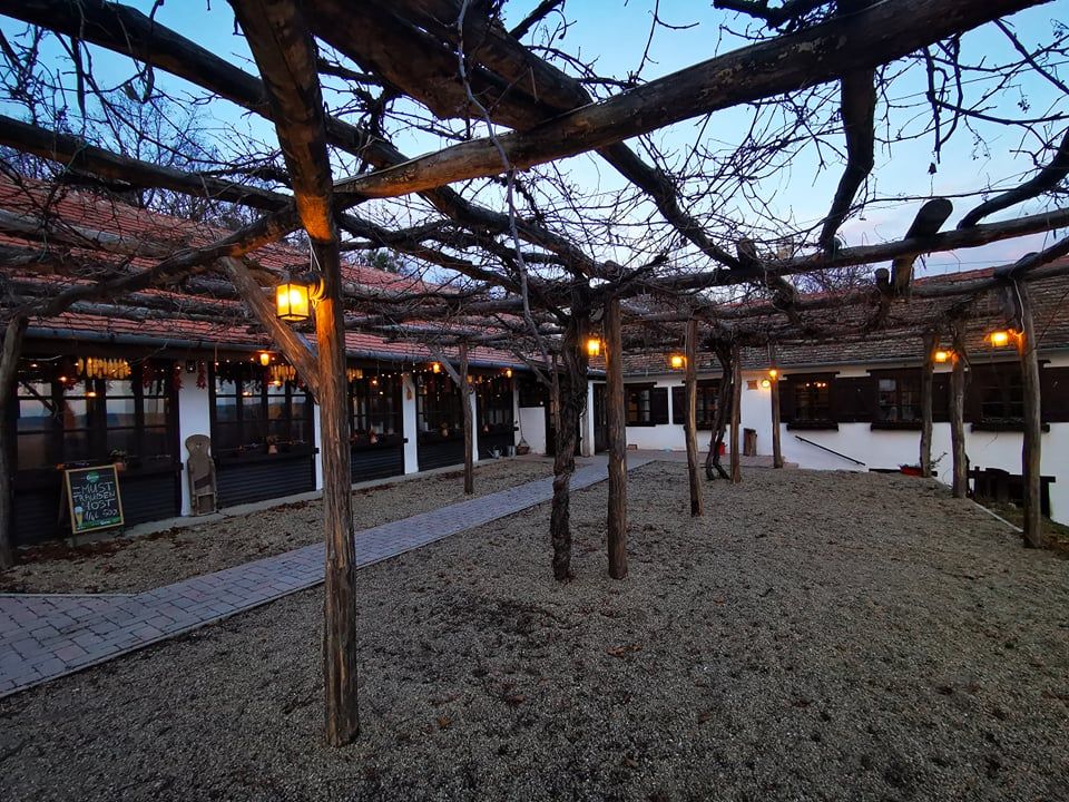 Eine Csarda wie sie im Buche steht…Die Határmenti Vigadó Csárda in Bozsok, Szőlőhegy unweit der österreichischen Grenze. Die Csárda liegt auf einem Hügel mit sehr schöner Weitsicht und hat neben urigen Innenräumen auch eine wunderschöne Terasse in Laubenform. Hier kann man im Sommer unter dem dichtbewachsenen „Naturdach“ aus Blattwerk verweilen.
