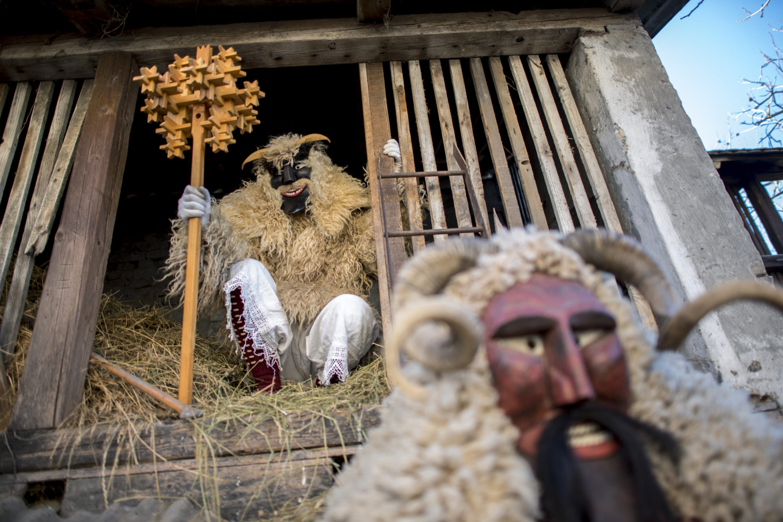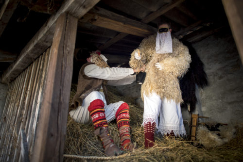 Busók készülõdnek egy mohácsi szénapadláson a busójárás elsõ napján, 2019. február 28-án.