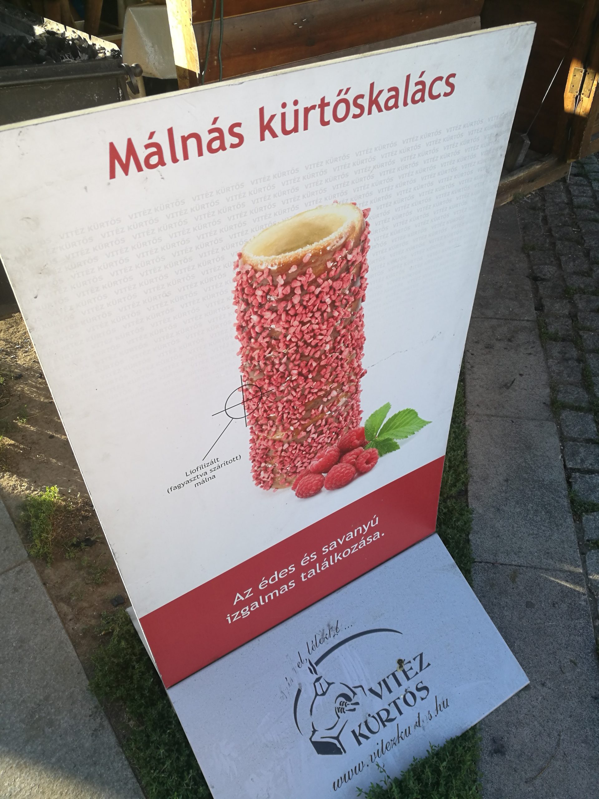 Den beliebten Kürtöskalacs, eine Art Baumkuchen in Ungarn und eine landestypische Spezialität gibt es auch in der Variante „Himbeer“. Normalerweise isst man ihn gerne mit Zimt und Zucker bestreut.