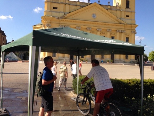 In Debrecen beispielsweise hat die Stadt sogenannte „Abkühlungsstationen“ aufgestellt. Unter einem Pavillion kann man sich von feinem Wassernebel besprühen lassen und somit abkühlen.