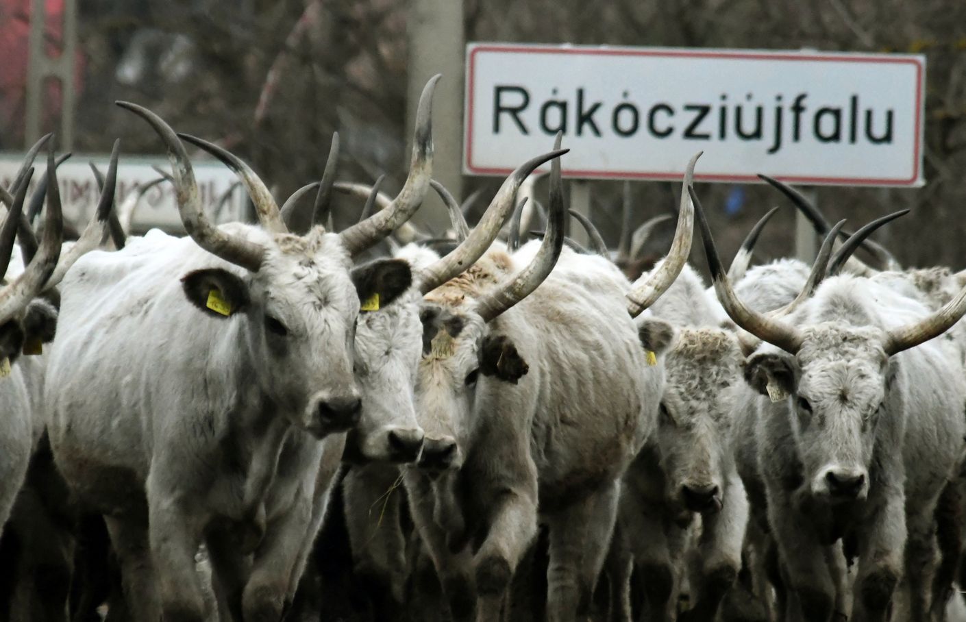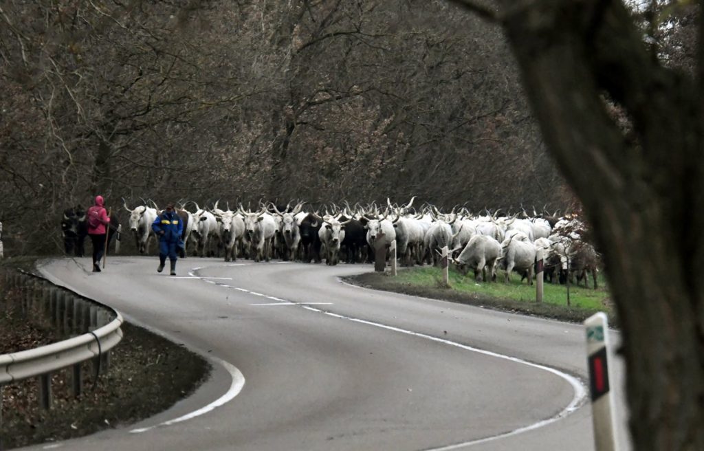Die letzten Graurinder werden in ihre Winterquartiere getrieben. Wie auch beim Almabtrieb werden derzeit in der Theissregion wie hier in Martfü die Graurinder teils über die Strassen bis in ihre Quartiere gebracht. Die Landstrasse 442 wurde daher für den Viehtrieb gesperrt gestern. Fast 10 KM mussten die Graurinder die Strasse passieren.
