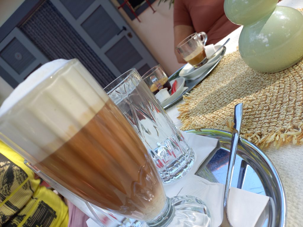 Auf dem Weg dorthin sah unsere Redakturin Julia aus dem Fenster und musste unbedingt anhalten, als sie dieses Café / Restaurant sah. Es ist ein kleines Juwel an einem Ort, mit einem herrlichen Blick auf die Berge. Eigentlich ist es ein Café, aber es hat auch eine Aussenterrasse mit Grill und bietet warme Speisen an. Die Bedienung ist sehr freundlich, es gibt eine Menge Kaffeespezialitäten, während im Hintergrund stimmungsvolle italienische Musik läuft. Es ist kein billiges Café, aber wegen der freundlichen Bedienung und der Aussicht sowie dem Ambiente ist es auf jeden Fall einen Besuch wert. Man kann es geniessen und chillen…Und zudem schmeckt es auch extrem gut. Es lohnt sich auch der Stop nur für einen Kaffee.