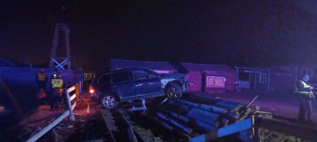 Ein Fahrzeug durchbrach hier mehrere Zäune und landete auf einem Holzstapel auf der Western Anlage Henryxcity. Das Westerndorf mit Westerneisenbahn liegt direkt an der Strasse in Csaszar.