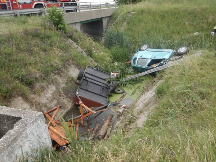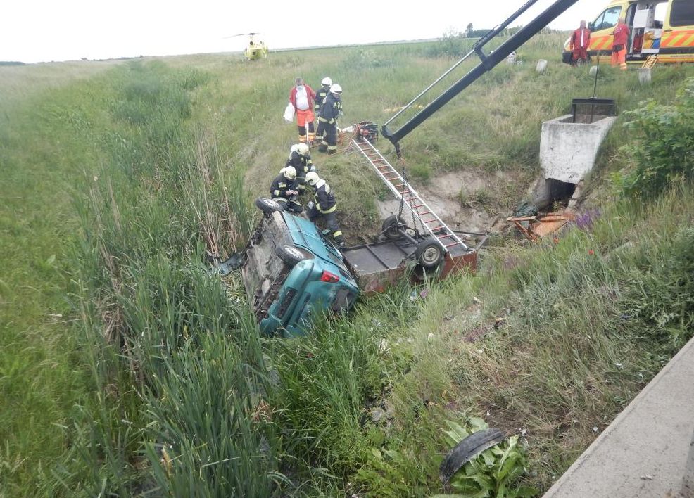 Ein PKW mit Anhänger driftete gestern von der Straße zwischen Abony und Kőröstetétlen ab, fiel dann vor der Brücke in einen 5 Meter tiefen Kanal. Zwei Personen saßen zum Unfallzeitpunkt im Auto – einer von ihnen wurde im PKW eingeklemmt. Die Feuerwehr befreite den eingeklemmten Mann mit schwerem Bergungsgerät aus den Trümmern. Beide Personen mussten schwerverletzt ins Krankenhaus gebracht werden. Auch der Rettungshubschrauber war im Einsatz.