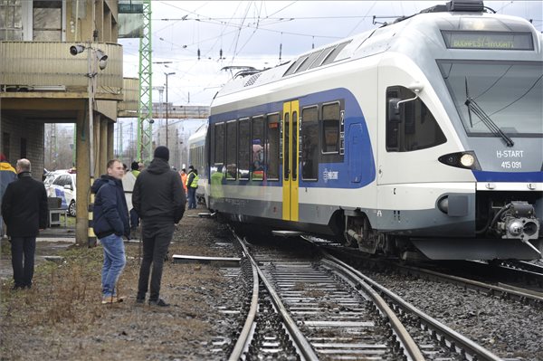 Kisiklott egy új motorvonat az Esztergomból a Nyugati pályaudvarra tartó úton, Rákosrendezőnél 2020. február 4-én.