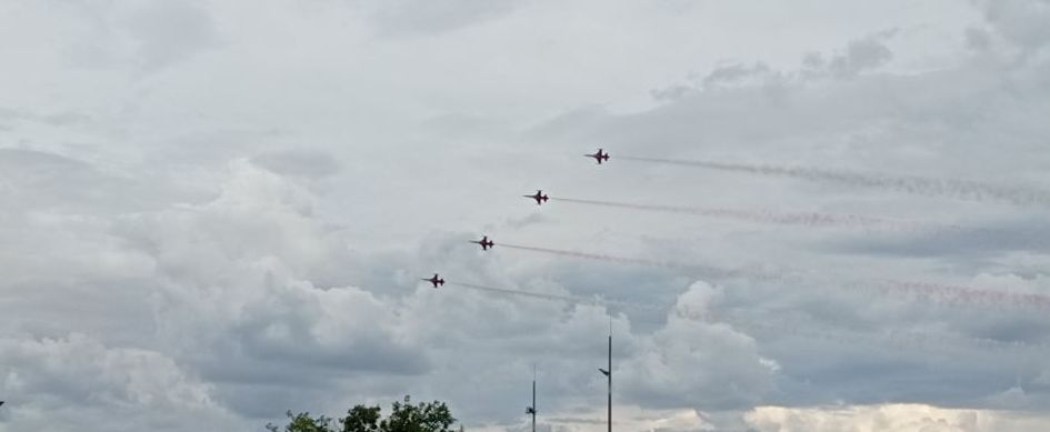 Vom Kampfjet bishin zum Militärtransporter und zahlreiche Helikoptervarianten war alles am Start. Beeindruckend auch der Absprung der Fallschirmjäger über dem Flugfeld.