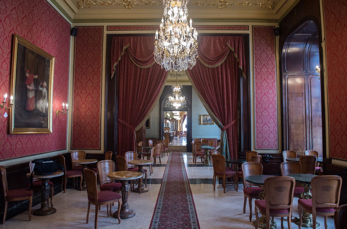 Der Rote Salon der Konditorei und Cafés Gerbeaud am Vörösmarty-Platz in der Hauptstadt ist mit Sicherheit eines der Highlights der Budapester Kaffeehäuser. Mit Gemälden von Gustave Moreau ein ganz besonderer Blickfänger. Henrik Kugler eröffnete 1858 die Konditorei, die 1882 von seinem späteren Geschäftspartner Emil Gerbeaud, einem Genfer Konditor, übernommen wurde. Die patinierte Konditorei wurde 1948 in Staatsbesitz und in Vörösmarty umbenannt. Ab 1984 ist der Name Gerbeaud über dem Eingang wieder zu lesen.