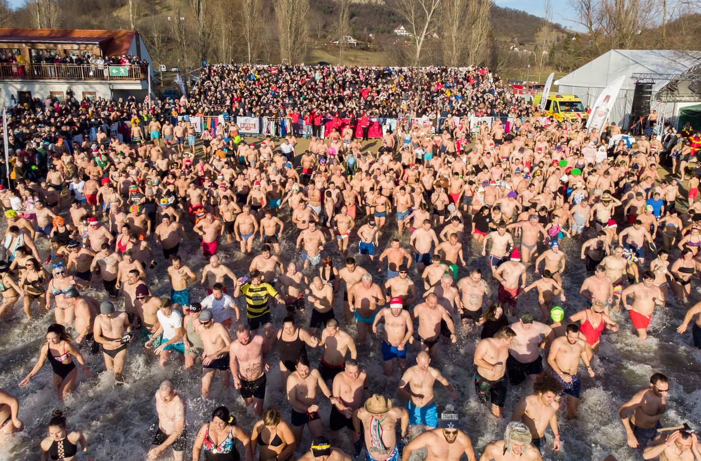 Bei perfektem Wetter trafen sich die Teilnehmer des 10. Neujahrsbadens am Balaton bei 3 Grad am Strand von Szigliget am 1. Januar 2020. Ungefähr siebenhundert Menschen nahmen an der Veranstaltung teil. Ein imposantes Bild wenn die Menschenmasse nur in Badekleidung bei winterlichen Temperaturen ins Wasser läuft und sich dort warmschwimmt. Die Veranstaltung zieht jedes Jahr mehr mutige Schwimmer an den See. Ein kalter Start ins Jahr!