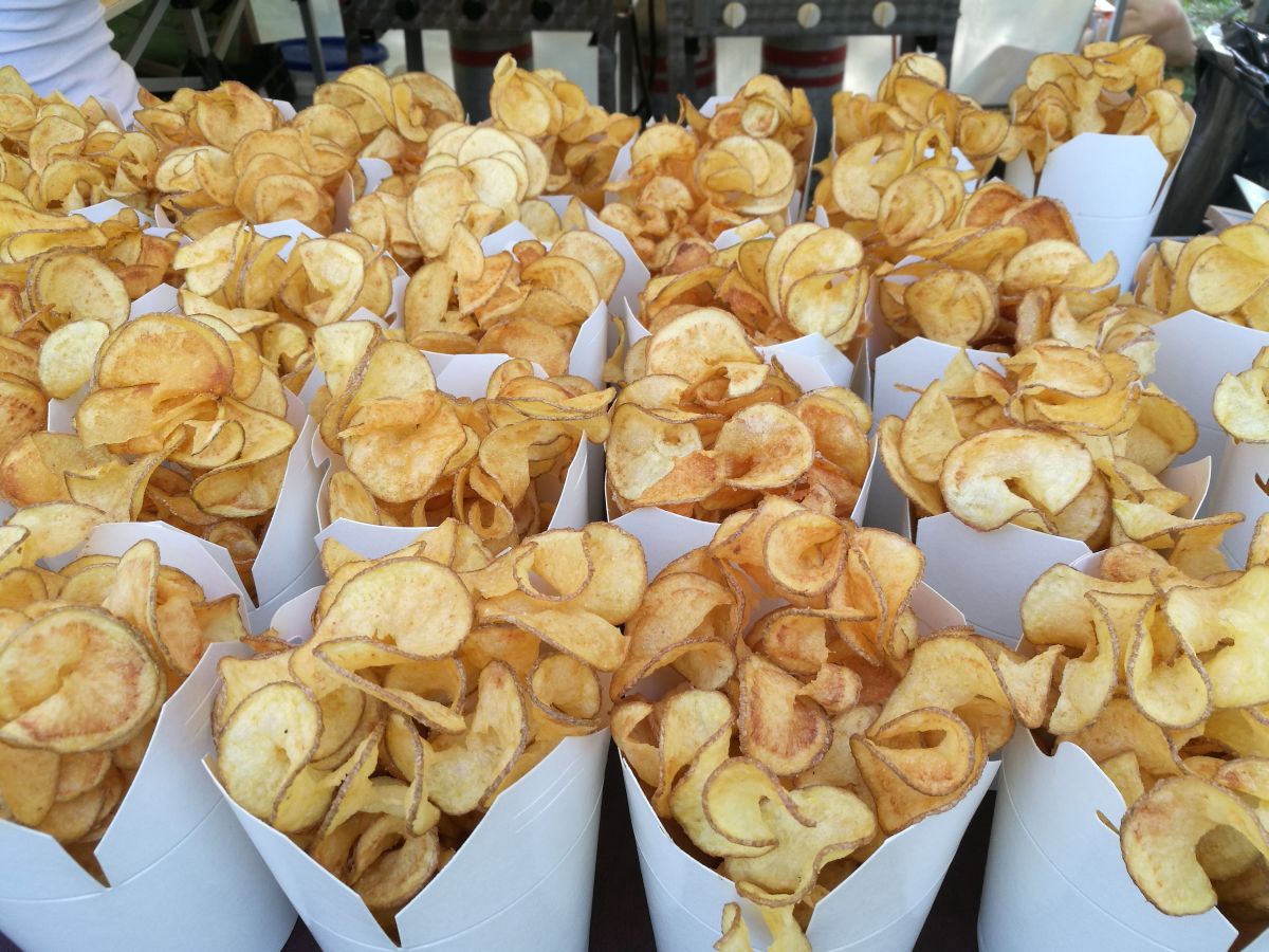 Auf Ungarns Märkten gibt es die original Kartoffelchips. Im Ofen oder überm Grill auf Holzstäbchen geröstet und kunsprig gebacken. Mit Salz und Pfeffer und etwas Öl bestrichen schmecken die Kartoffelscheiben so hervorragend. Ein optimaler Snack für zwischendurch.