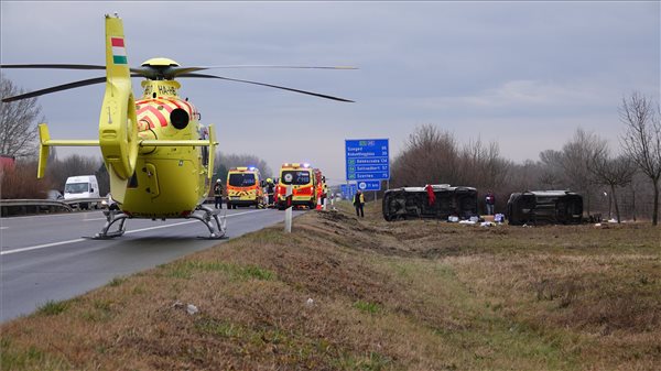 Zwei Kleinbusse fuhren am gestern nachmittag (6. Januar) auf der M5 Bei Kecskemét und schleuderten nach nach einer Kollision in einen Graben und überschlugen sich bei Kecskemét auf der Seite der Autobahn M5 in Richtung Szeged. Insgesamt befanden sich sieben Personen in den Fahrzeugen, einer von ihnen war eingeklemmt und musste von Feuerwehrleuten mit schwerem Gerät gerettet werden. Die schwerverletzte Person wurde mit einem Rettungshubschrauber in eine Klinik geflogen. Sechs weitere Personen wurden von Rettungssanitätern vor Ort erstbehandelt und ebenfalls in umliegende Krankenhäuser gebracht. Die Autobahn M5 bei Kecskemét in Richtung Szeged war während der Rettungs- und Bergungsarbeiten voll gesperrt