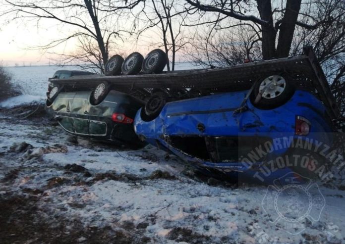 Auf der Hauptstrasse 4 in Kenderes hob heute nachmittag ein Trailergespann regelrecht ab. Das Gespann kam von der Fahrbahn ab und kippte dann in der Böschung auf die Seite. Auf dem Trailer befanden sich zwei Fahrzeuge. Die Feuerwehr musste die Fahrzeuge mit Drahtseilen aus der Situation befreien und stellten das Gespann letztendlich wieder auf die Räder. Trotzdem entstand hoher Sachschaden an den Fahrzeugen. Die Hauptstrasse 4 war während der Bergungsarbeiten komplett gesperrt. der Fahrer des Gespannes wurde leicht verletzt.