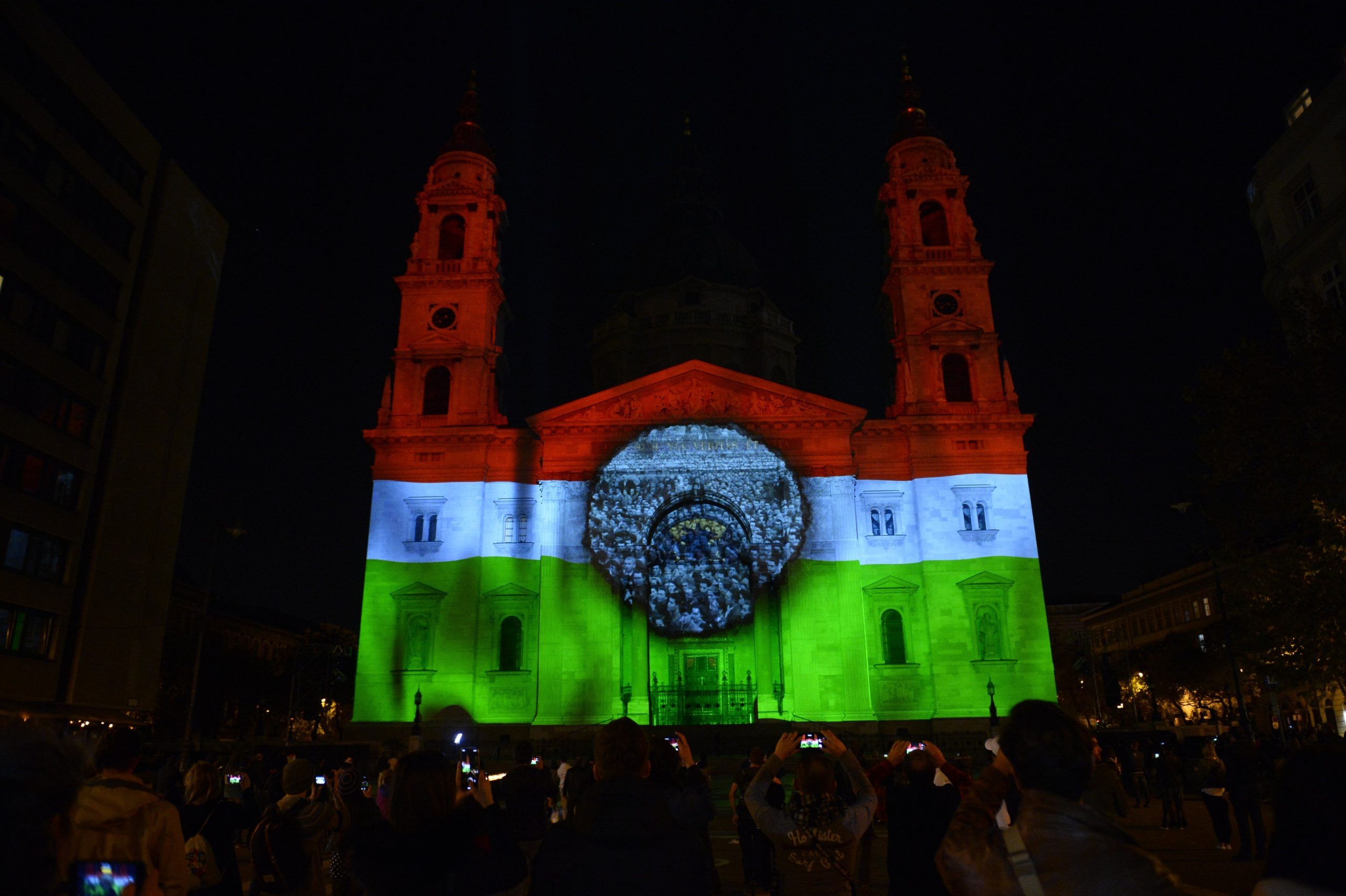 Der 4. November erinnert in Ungarn an die Revolution und die Invasion der sowjetischen Truppen von 1956. Hierzu finden jedes Jahr traditionell verschiedene Veranstaltungen statt, wie hier auf dem Kossuth Platz oder in der St. Stephen Basilica in Budapest. Hier gab es am Abend ein grosses Konzert sowie zahlreiche Lichtelemente an dem Gebäude.