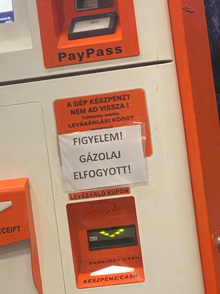 Jetzt wollen Großhändler kein Kraftstoff mehr besorgen, denn der Kaufpreis ist deutlich höher, als der Verkaufspreis, das verursacht zur Zeit an den meisten Tankstellen Ungarns Mangel, vor allem an Diesel. Vielerorts gibt es Beschränkungen für das Tanken, meistens für LKWs, die nur 50 Liter auf einmal tanken dürfen. Hier einige Bilder von Tankstellen aus Mosonmagyaróvár und Umgebung (9. März):