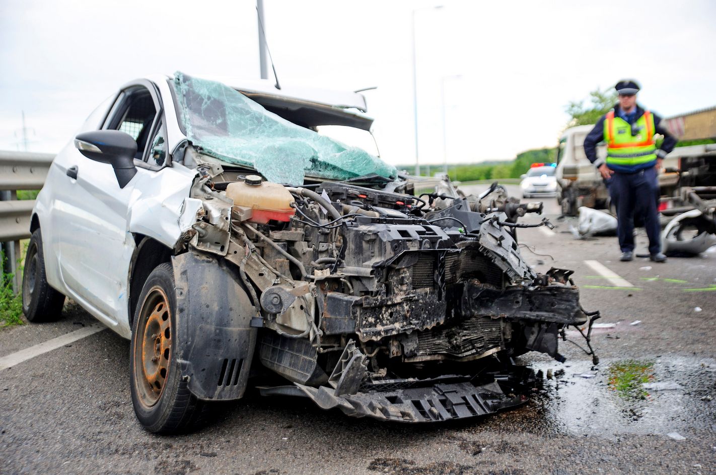 Der Fahrer eines PKWs wurde am Nachmittag auf der Grenzstrasse Rákospalota in seinem Fahrzeug schwerst eingeklemmt, nachdem er mit einem LKW kollidiert war. Der Fahrer wurde mit lebensgefährlichen Verletzungen von der Feuerwehr aus dem Autowrack befreit und dem Rettungsdienst übergeben. Der Fahrer des LKW wurde leicht verletzt. Die Polizei spertte den Unfallort ab und untersucht die Umstände der Kollision.