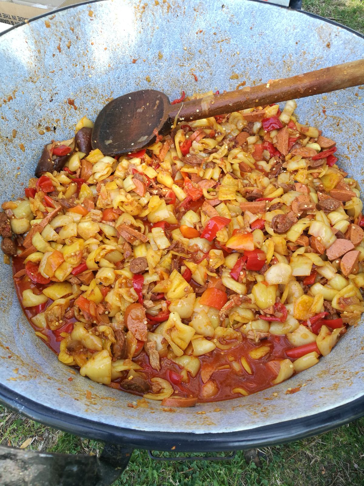 Angefangen von Lecsó mit Hühnerleber bishin zur traditionellen Art mit Kolbász und Ei. Das gute Gemüse wurde bereits von morgens 10 Uhr an geputzt und geschnitten.