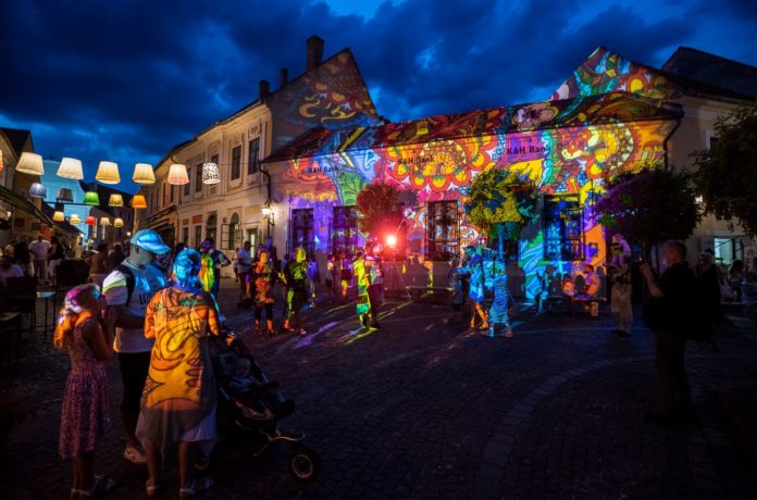 Ein Highlight im wahrsten Sinne des Wortes: Lichtmalerei und Lichtkunst beim Tag und Nacht Open Festival in Szentendre auf dem Hauptplatz. Ein künstlerisches Event mit viel Drumherum und vor allem jede Menge Lichtkunst. Die Gebäude erstrahlen bei Einbruch der Dunkelheit in wunderschönen Facetten. Auch heute noch zu geniessen.