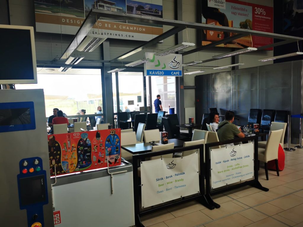 Der kleine Balaton Flughafen bietet viele Annehmlichkeiten. Er ist überschaubar und hat seinen eigenen Charme. Im Abflugbereich gibt es ein kleines Café mit Aussenterasse. Nach dem Sicherheitscheck haben die Passagiere die Möglichkeit sich auf die obere Etage auf die verglaste Besucherterasse zu begeben. Hier gibt es sogar einen kleinen Souvenirshop. Somit hat der Héviz-Balaton Airport definitiv seinen eigenen Charme.